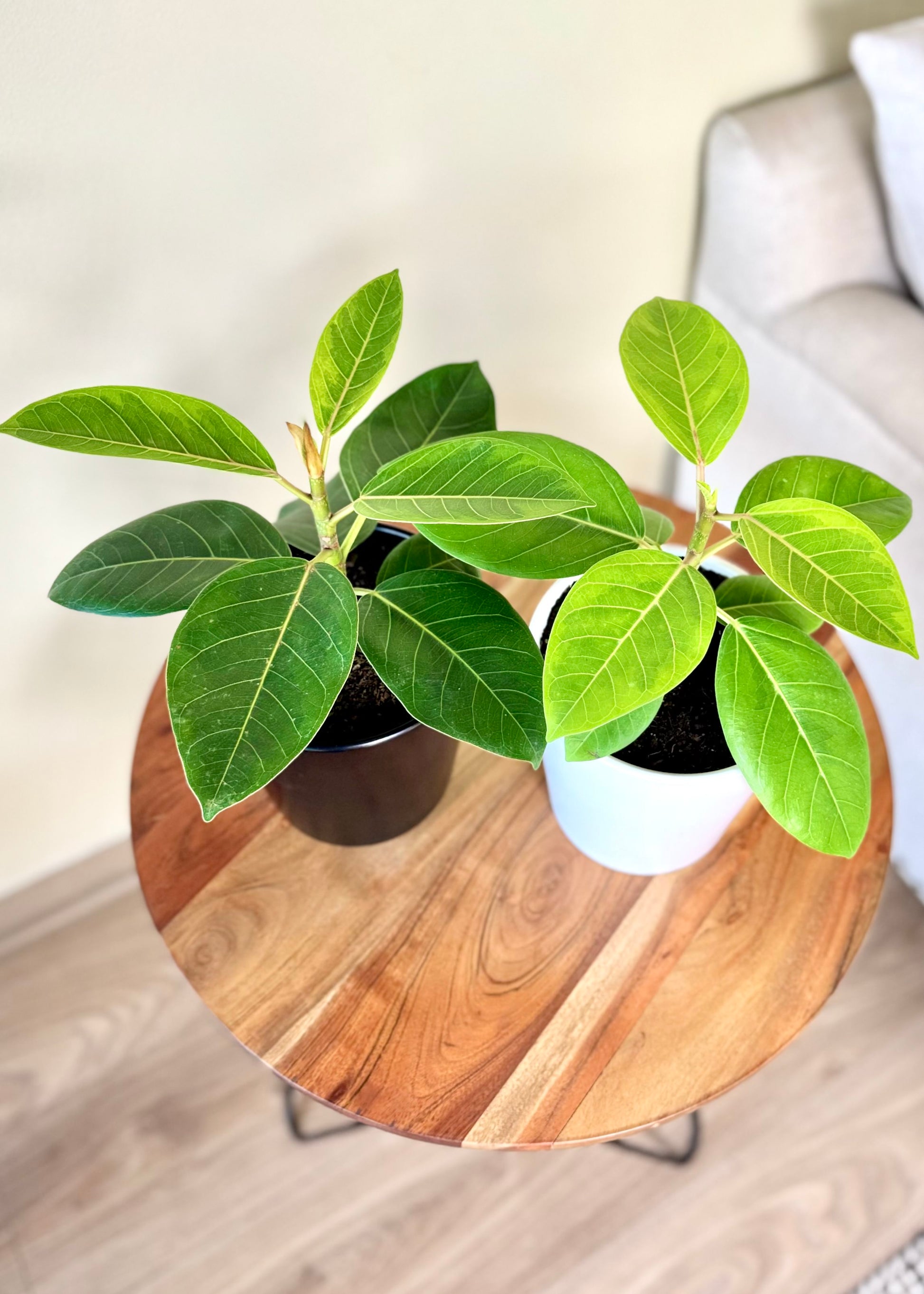 El Gomero o Ficus Altissima es de esas plantas que alegran cualquier rincón con solo estar ahí. Sus hojas en tonos verde limón y vetas contrastantes le dan un look moderno, vibrante y muy decorativo 💛🍃