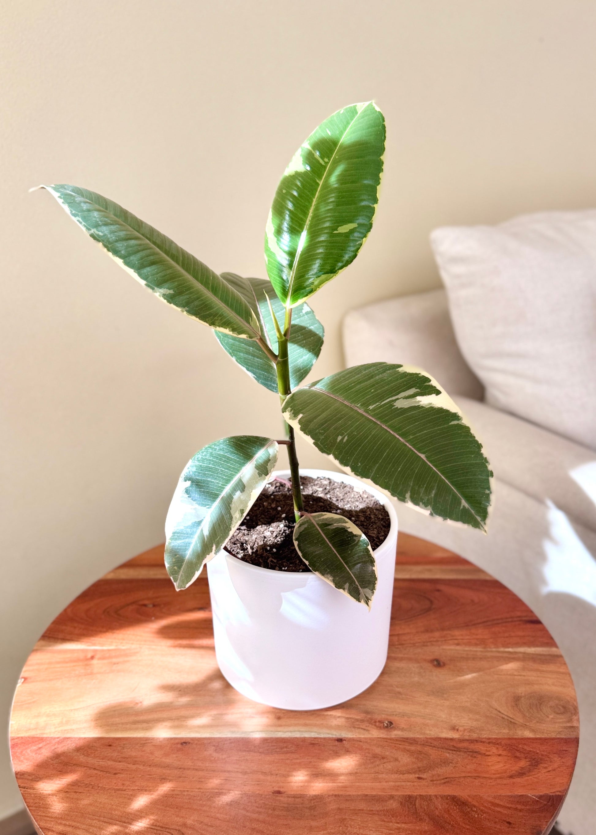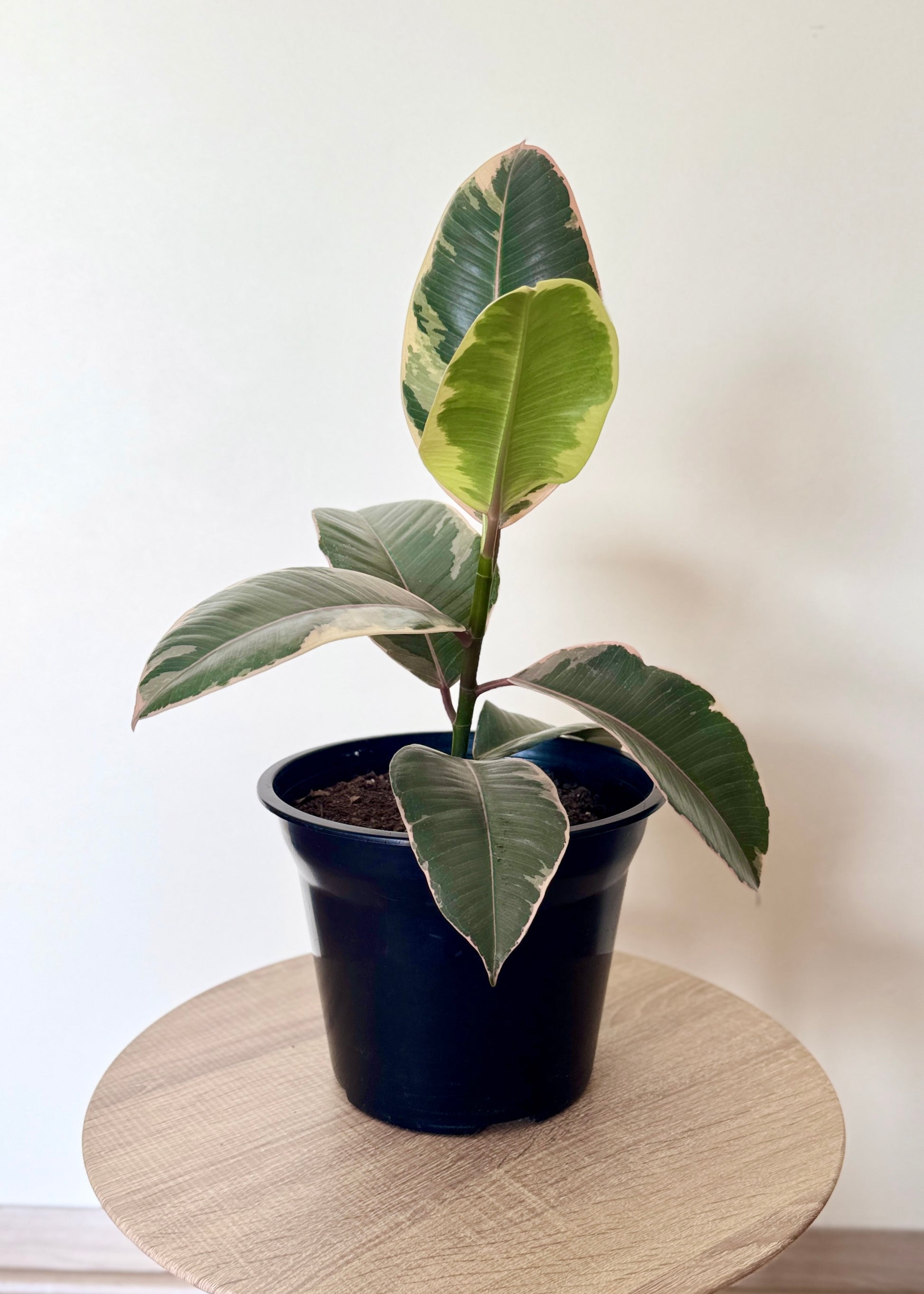 El Gomero o Ficus Tineke es una planta de interior que enamora por sus hojas en tonos verde, crema y toques rosados — ¡una mezcla perfecta de frescura y estilo! ✨