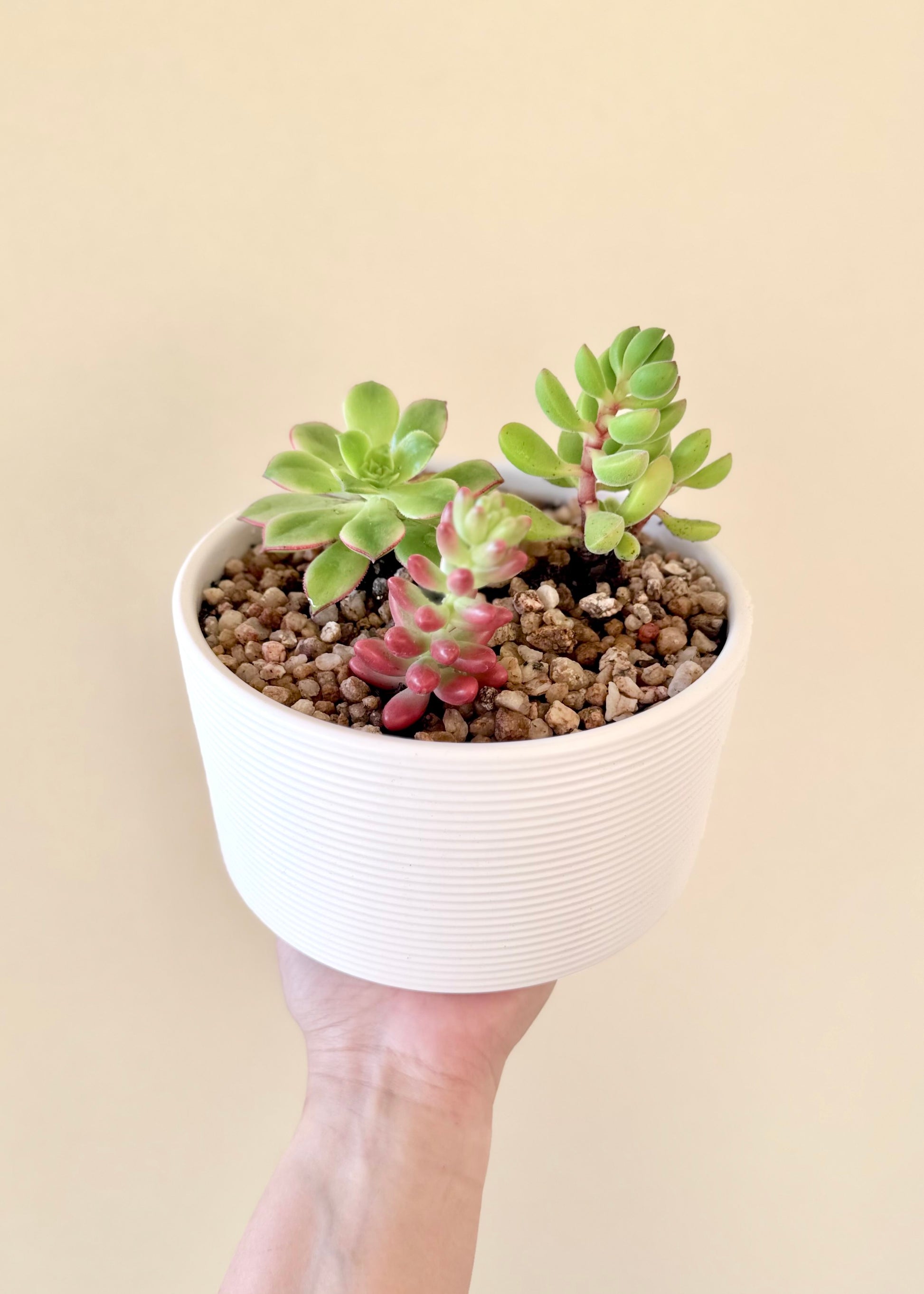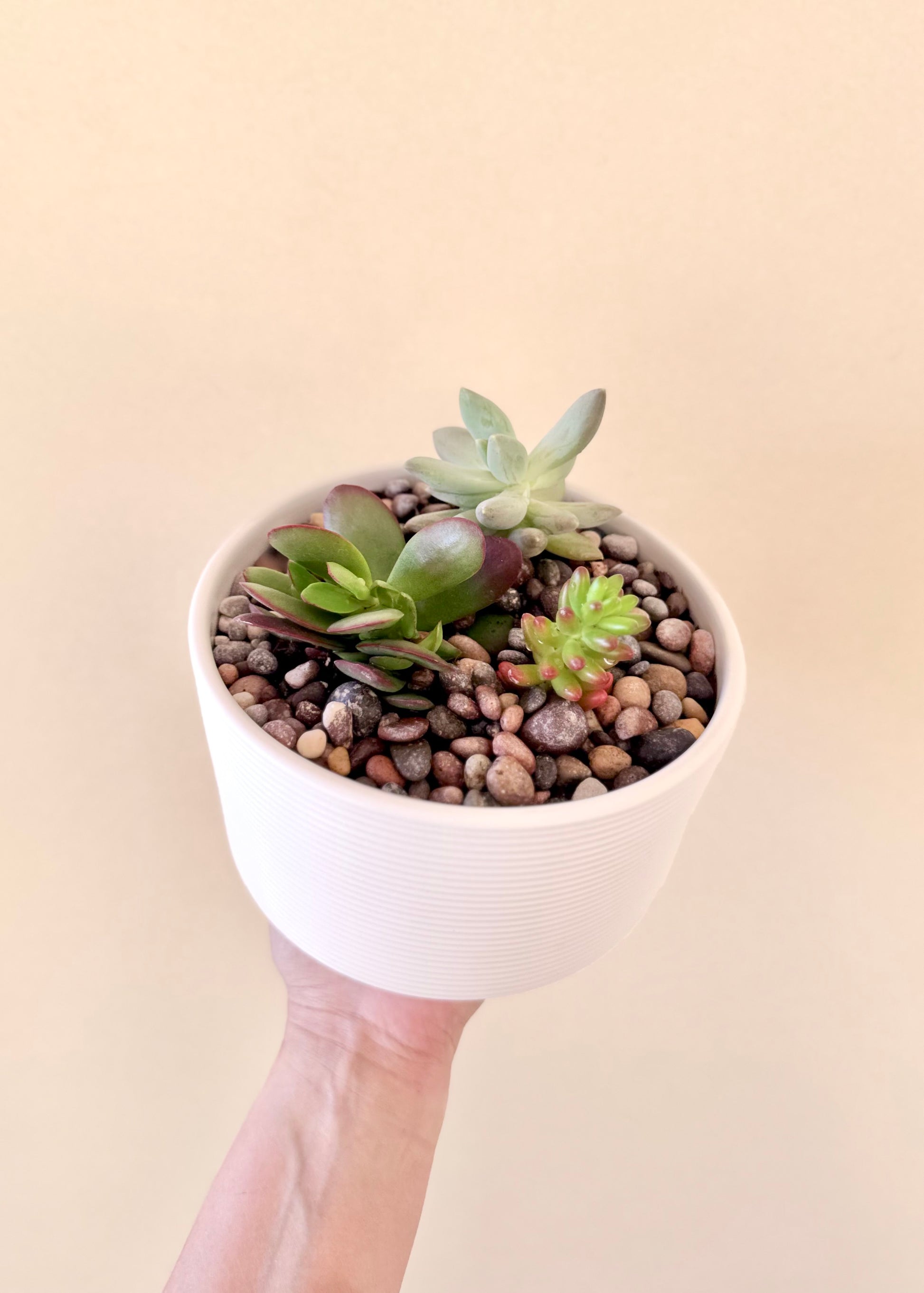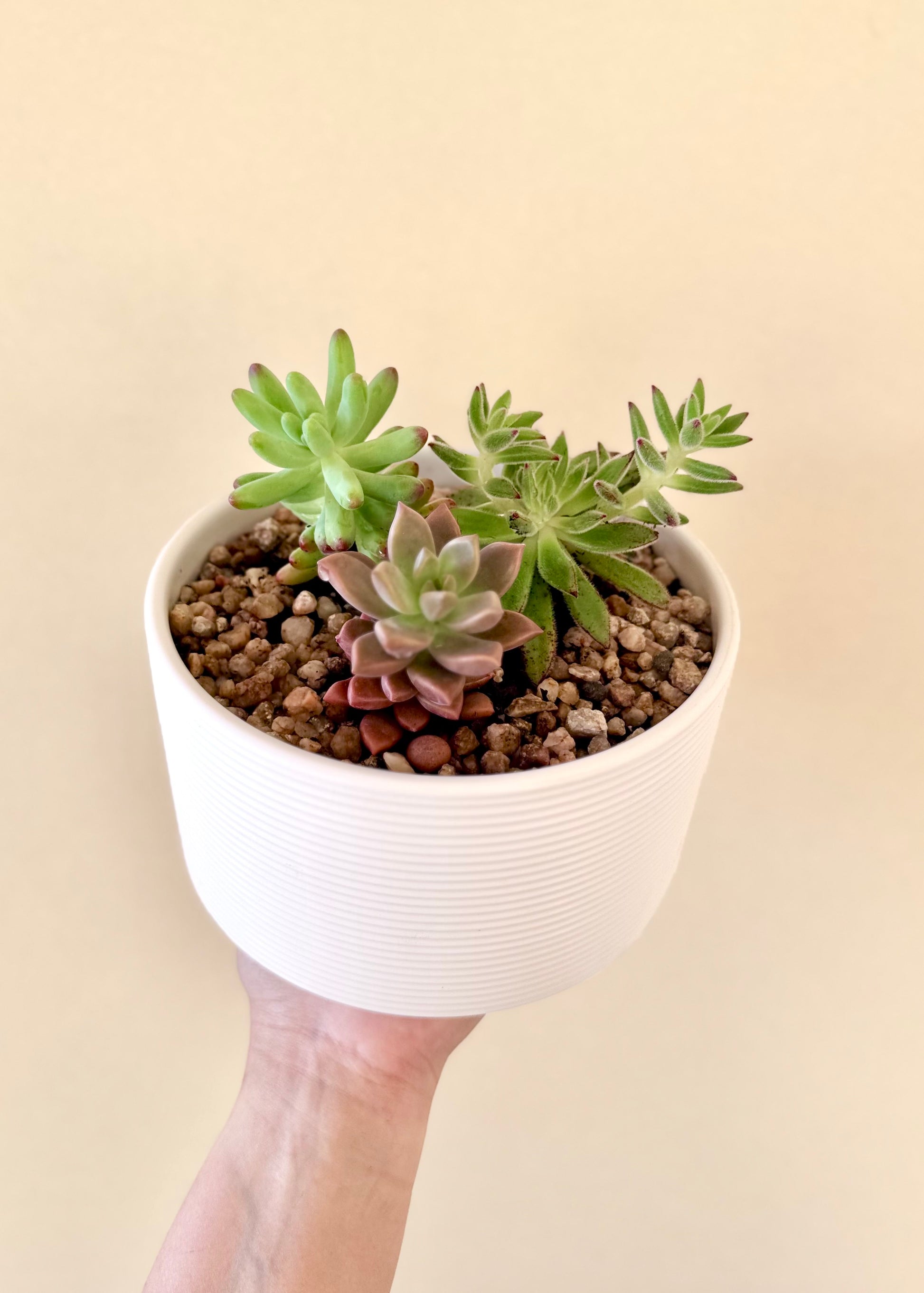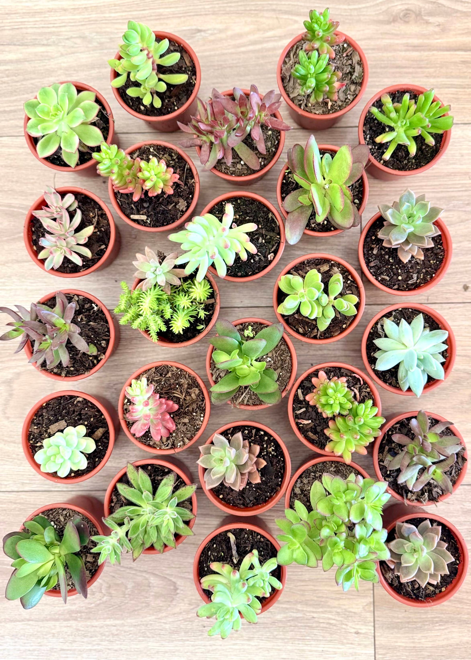 Incluye una selección surtida de suculentas que sorprenden con sus formas, colores y texturas — ¡cada uno es único!