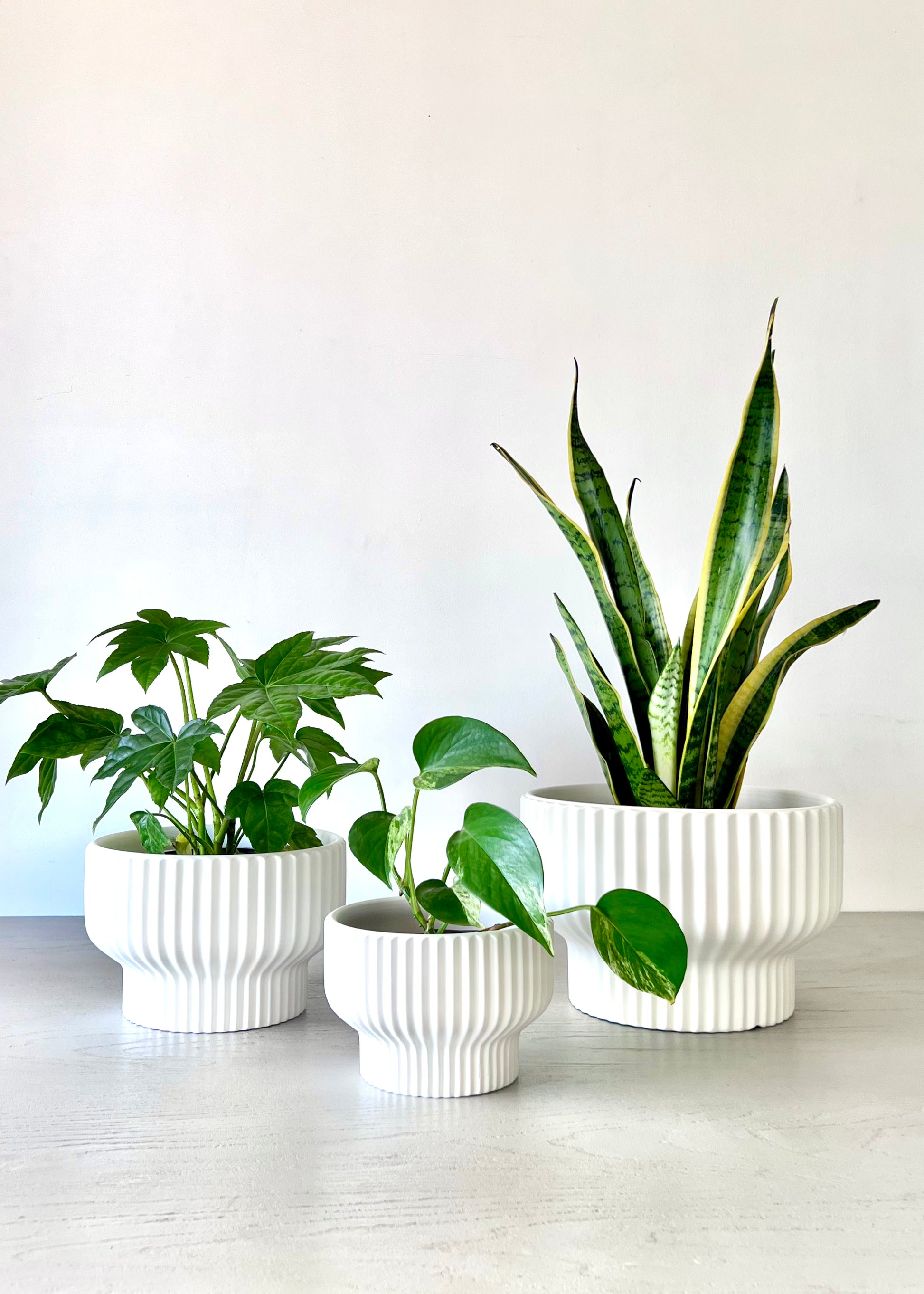 Textura estriada, elegantes y modernos. Es un complemento ideal para resaltar tus plantas y decorar con estilo.
