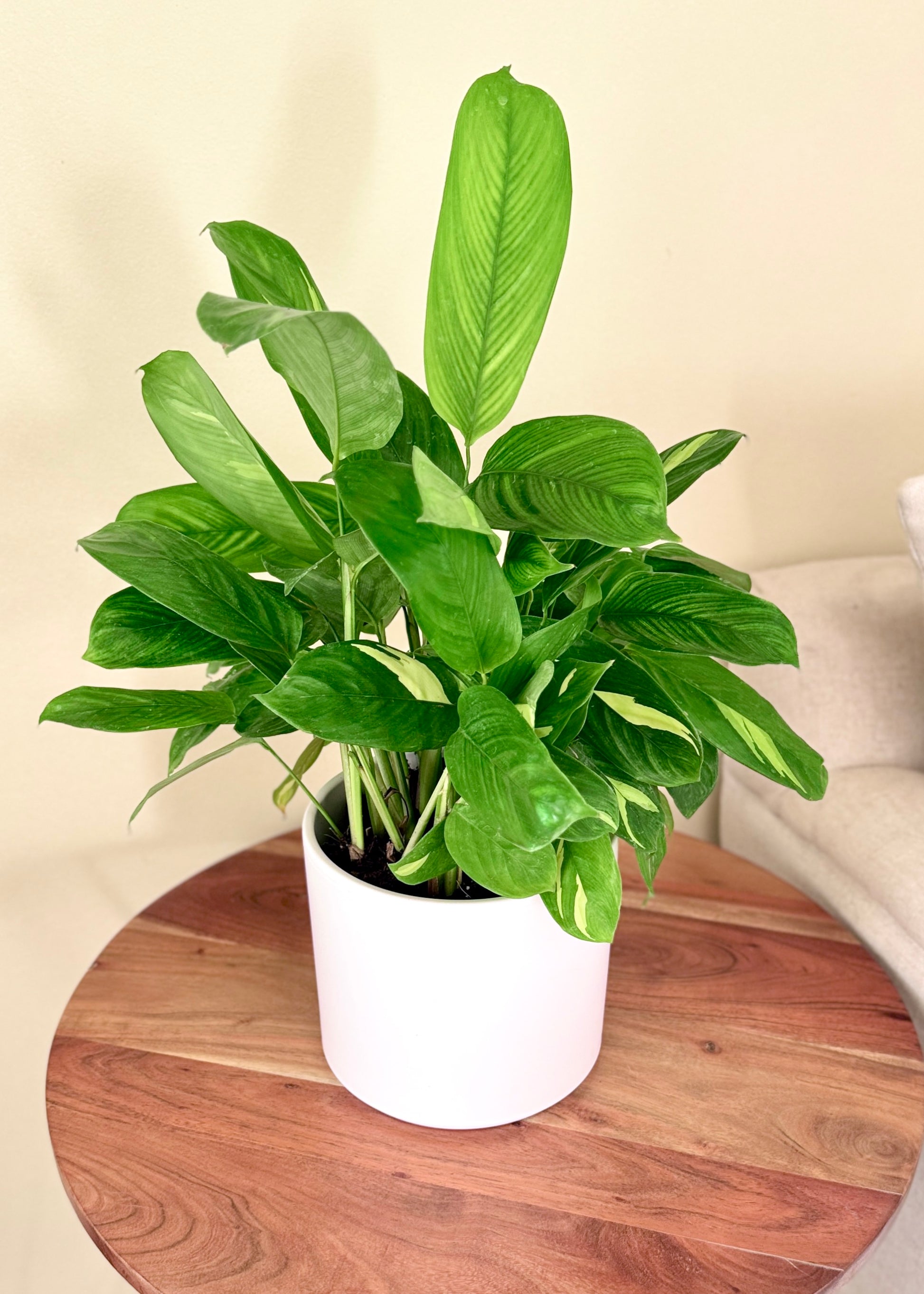 La Maranta Lubbersiana destaca por sus hojas únicas con patrones en tonos verdes y amarillos que parecen hechas con pinceladas ✨. Es una planta tropical que ama la humedad y los espacios con luz suave, ideal para interiores acogedores y llenos de vida. Además, ¡sus hojas se mueven! Se cierran ligeramente por la noche como si "durmieran" 🌙💤.