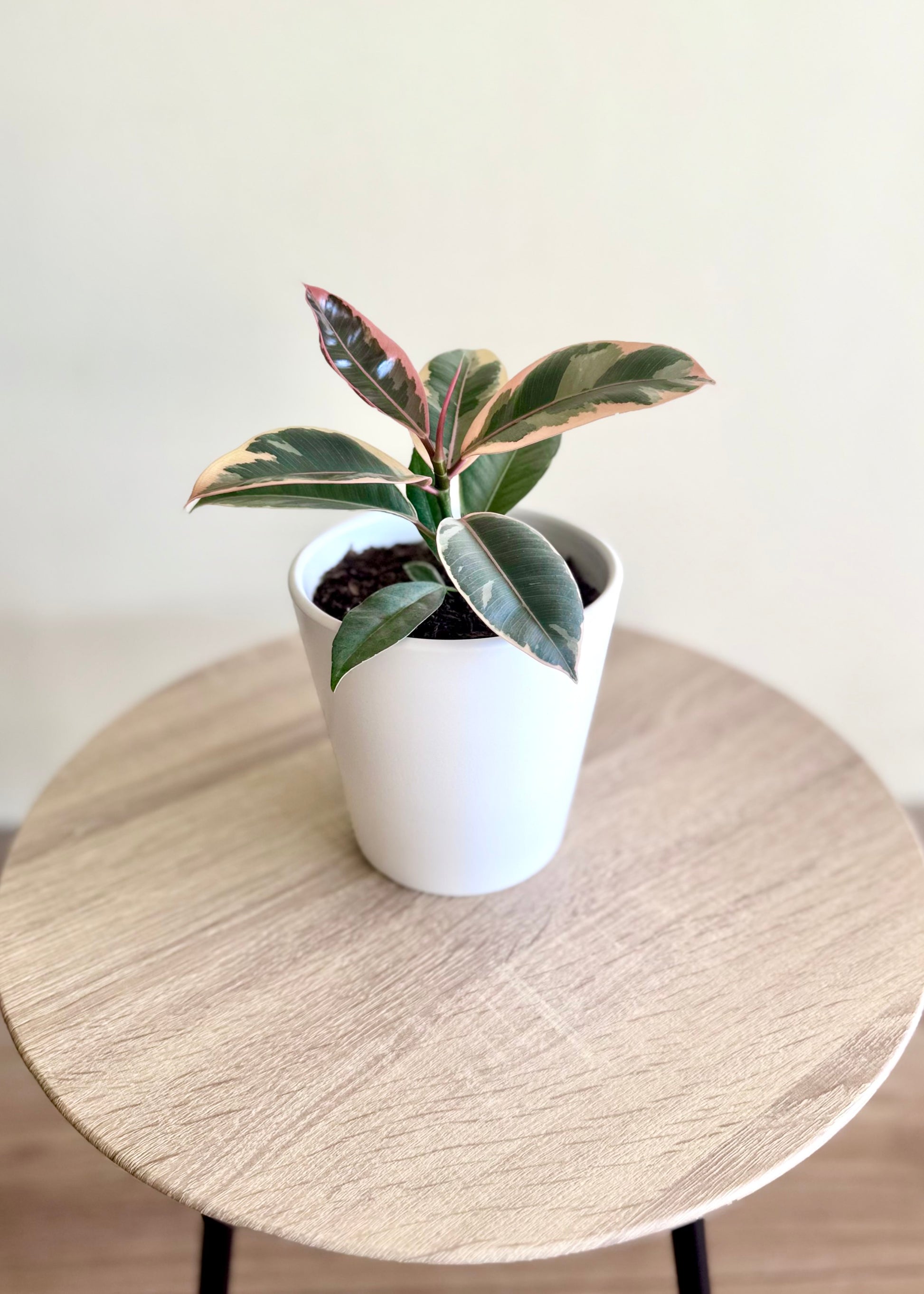 El Mini Gomero Tineke es una joyita decorativa 💚. Destaca por sus hojas en tonos verde, crema y rosado que parecen pintadas a mano. Ideal para espacios pequeños, repisas o escritorios que necesitan un toque de color sin complicarse con los cuidados. ¡Pequeño pero con toda la onda! 😉