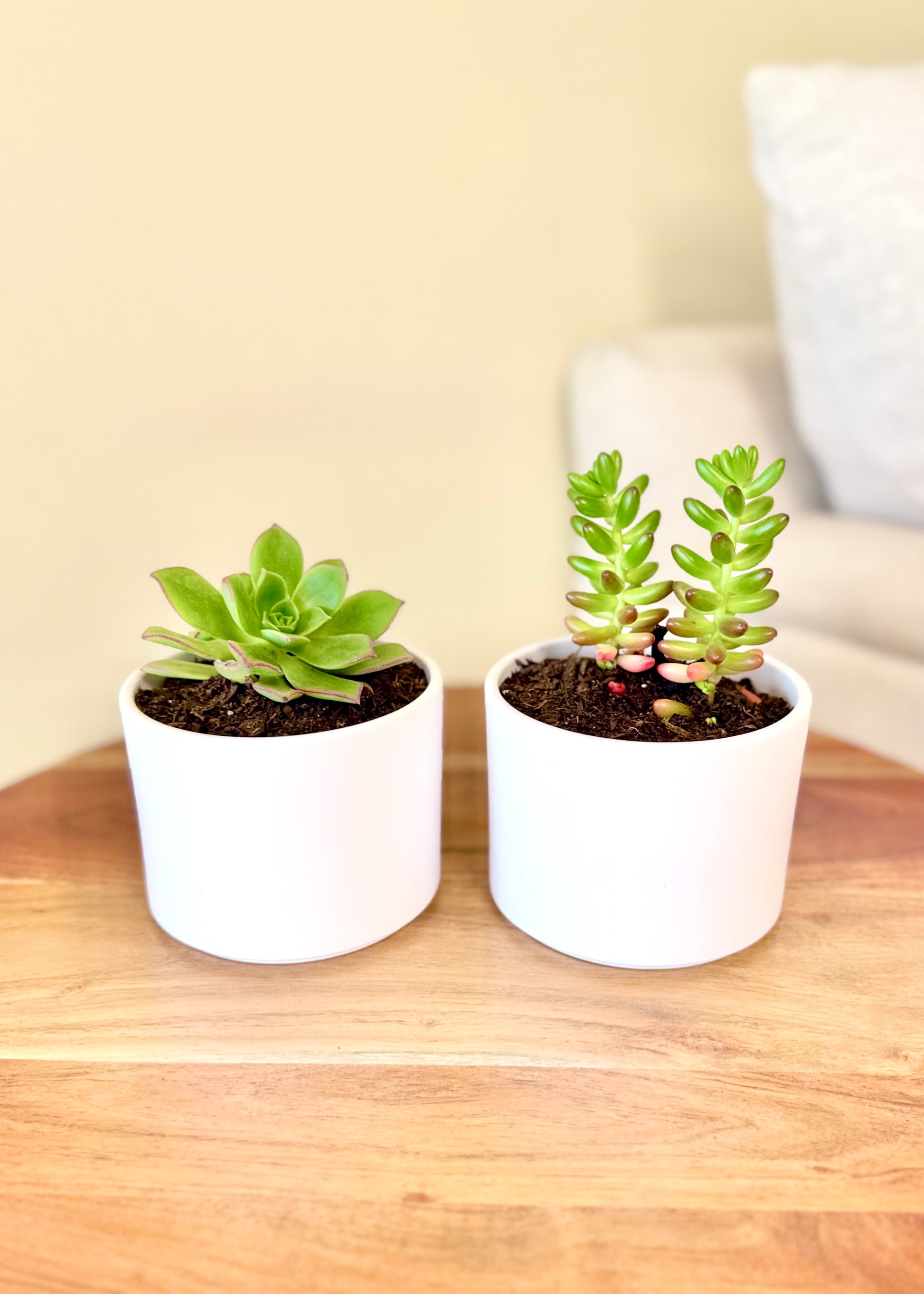 Este set de dos suculentas en maceteros de cerámica blancos es perfecto para regalar(te) o darle un toque natural a tu escritorio, repisa o rincón favorito 💚🎁